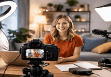 Pick a background that matches your content, like a simple desk for tutorials or a clean shelf for reviews.
